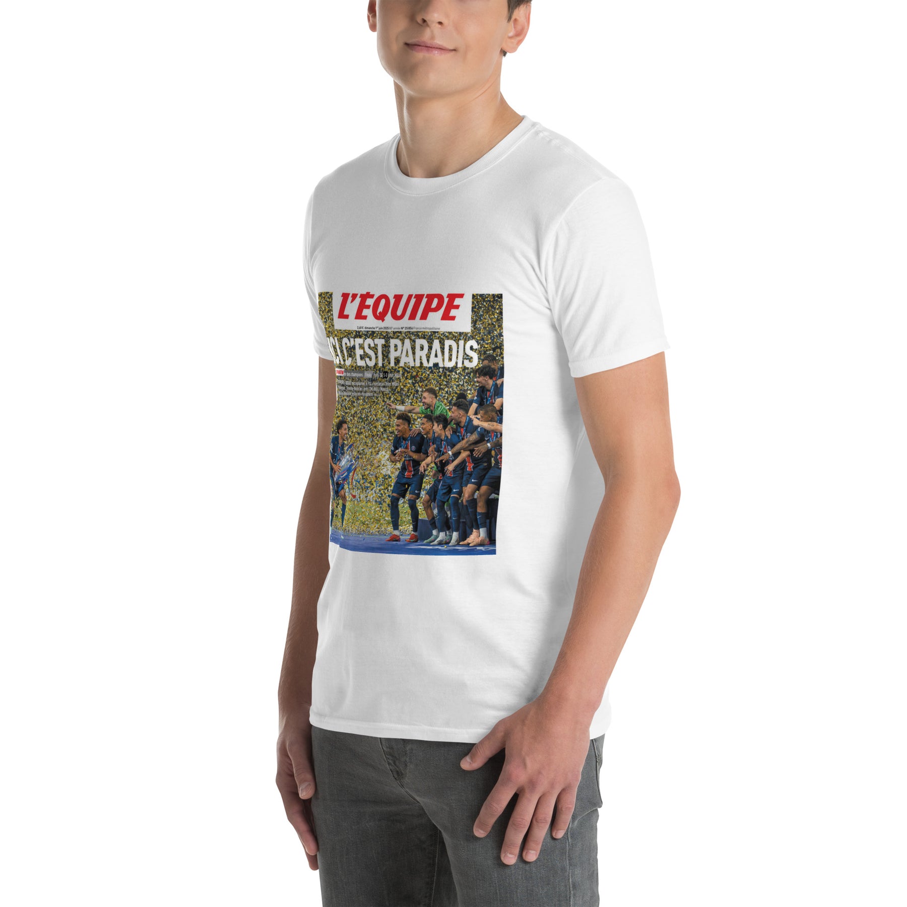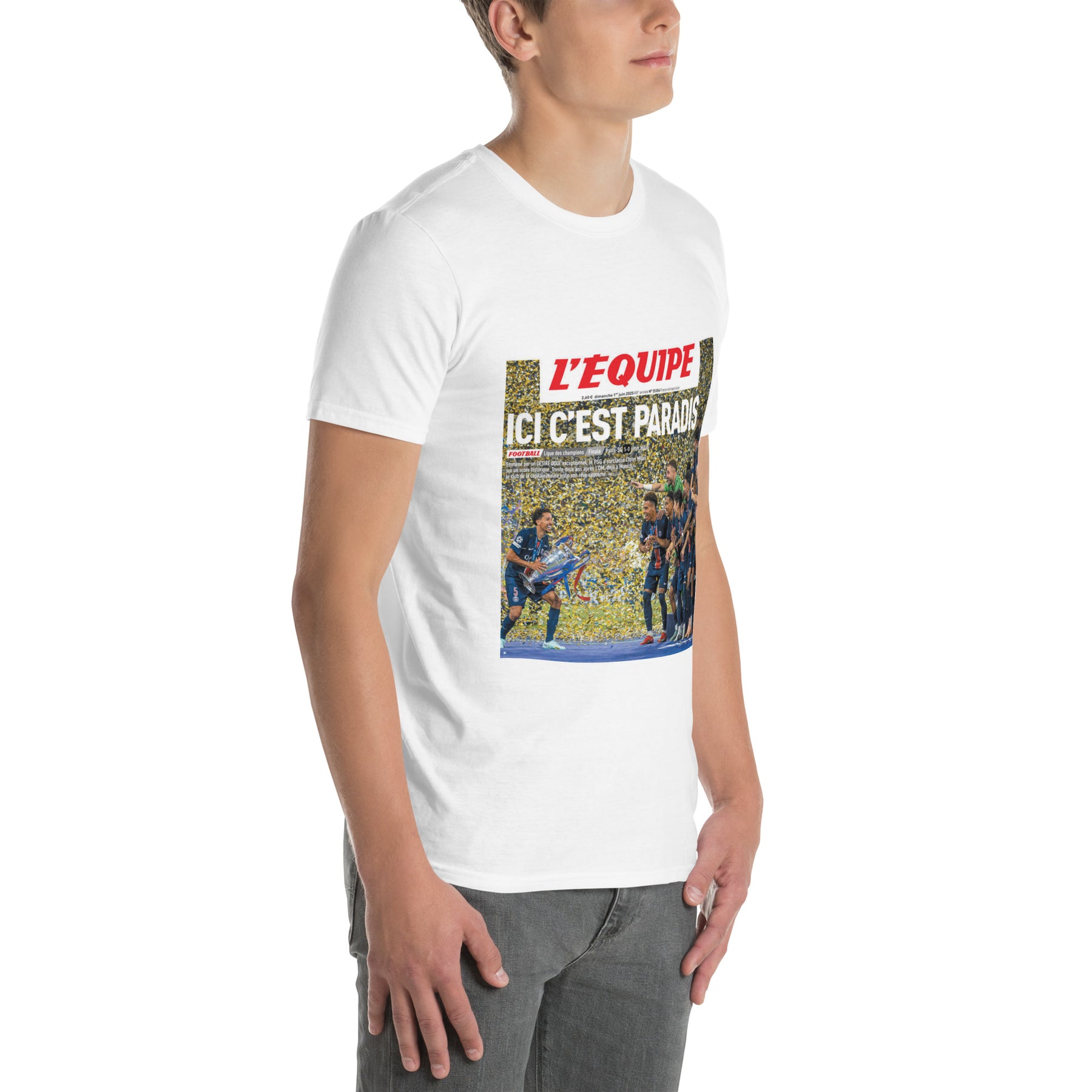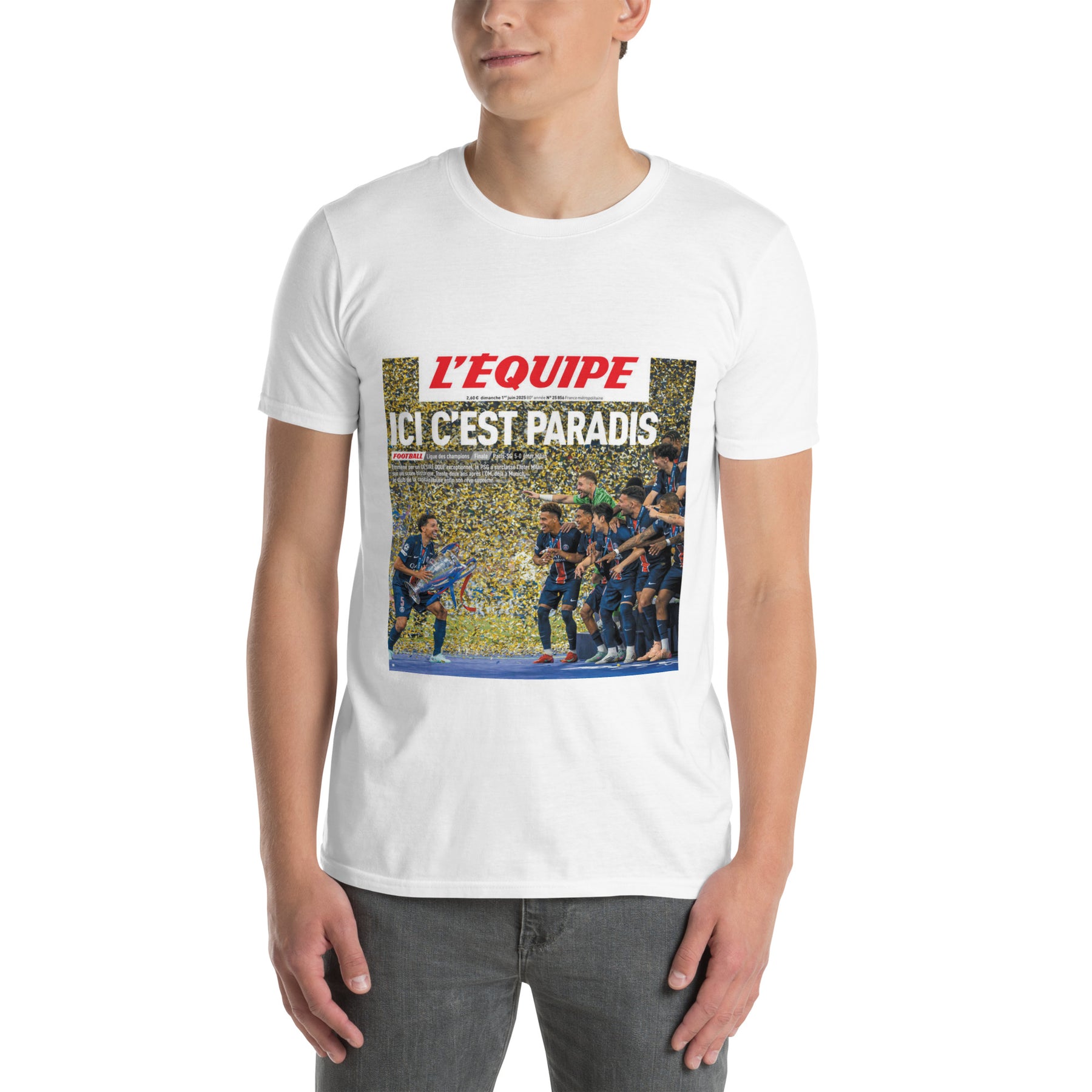 Le design est une reproduction de la Une historique du journal L'Équipe parue le lendemain du sacre européen, le 1er juin 2025. Il immortalise le titre "ICI C'EST PARADIS" et la photo de l'équipe célébrant la victoire avec le trophée.